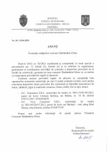 Articolul Anunț deșeuri inerte apare prima dată în Primăria comunei Sântămăria Orlea, județul Hunedoara.
