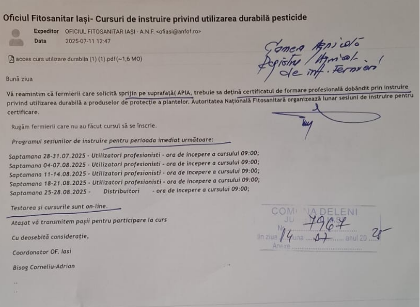 The post Cursuri de instruire privind utilizarea durabila a pesticidelor first appeared on Primăria Comunei Deleni – județul Iași.