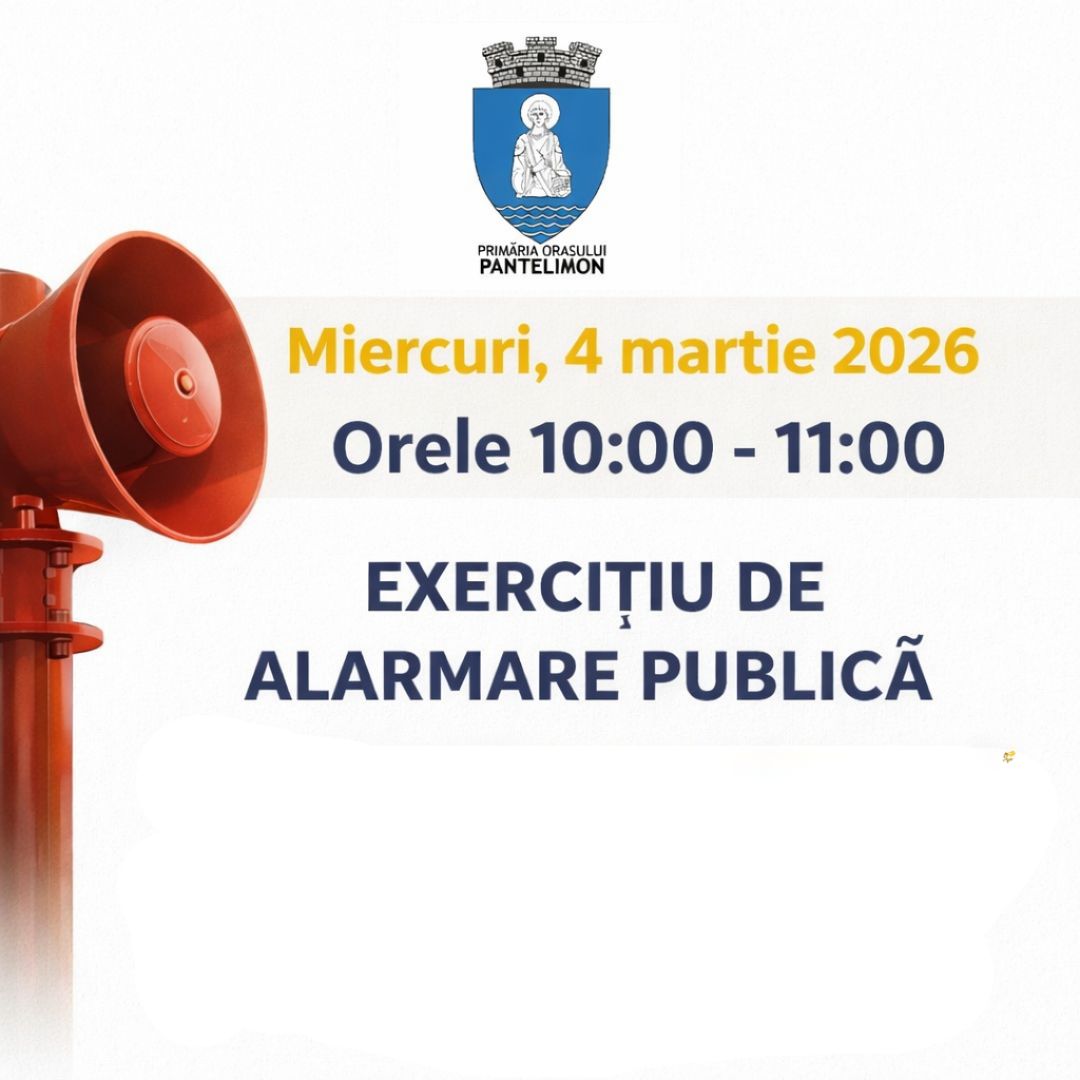 Pe durata exercițiului, sirenele de avertizare-alarmare vor fi acționate pentru verificarea funcționării echipamentelor. Menționăm că este o testare planificată, iar semnalele acustice nu indică o situație reală de urgență.