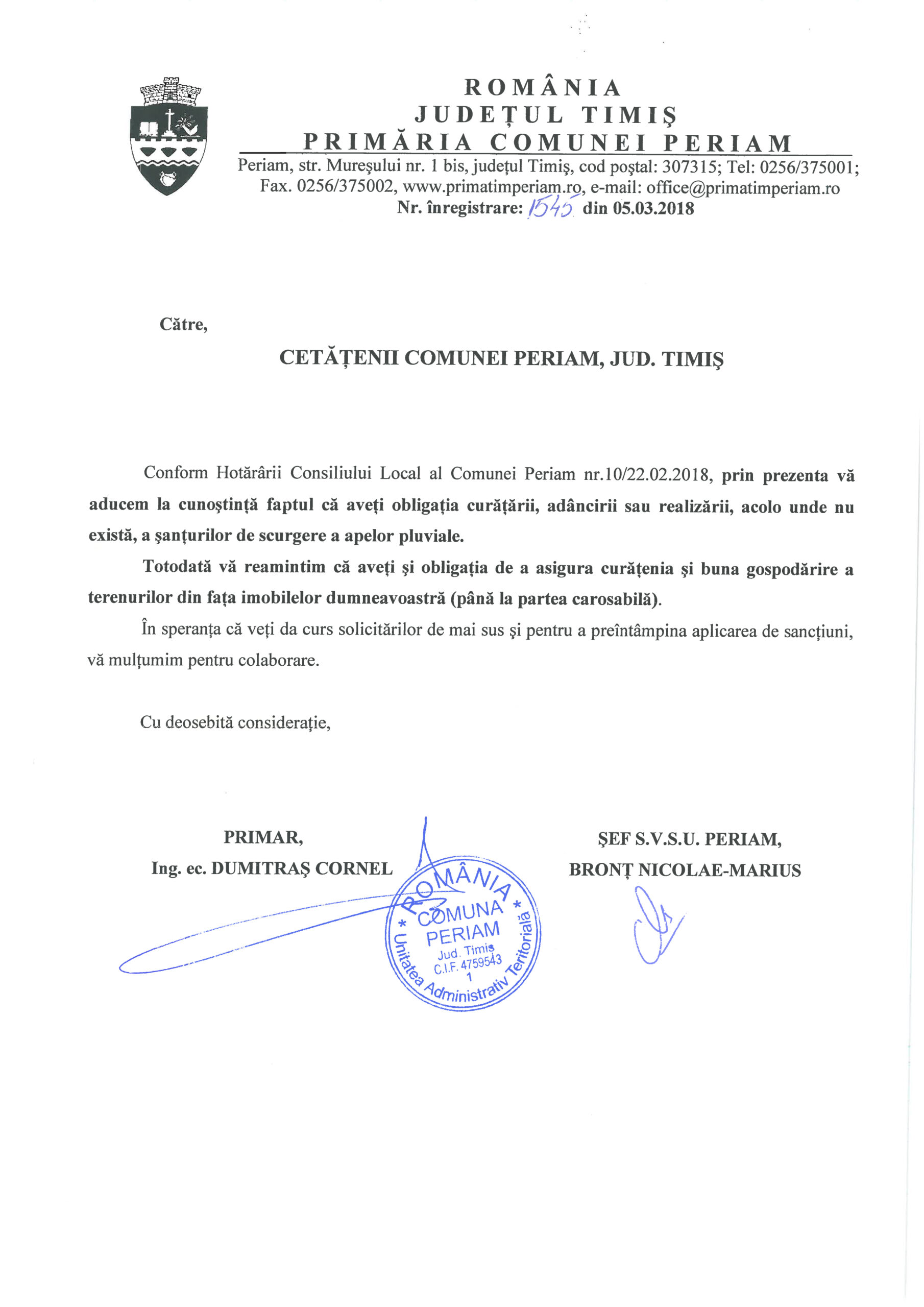 The post H.C.L. nr. 10/22.02.2018 appeared first on U.A.T Comuna Periam. Source Navigare în articole Minută ședință din 11.10.2019 HCL nr. 54-55 din 08.07.2020