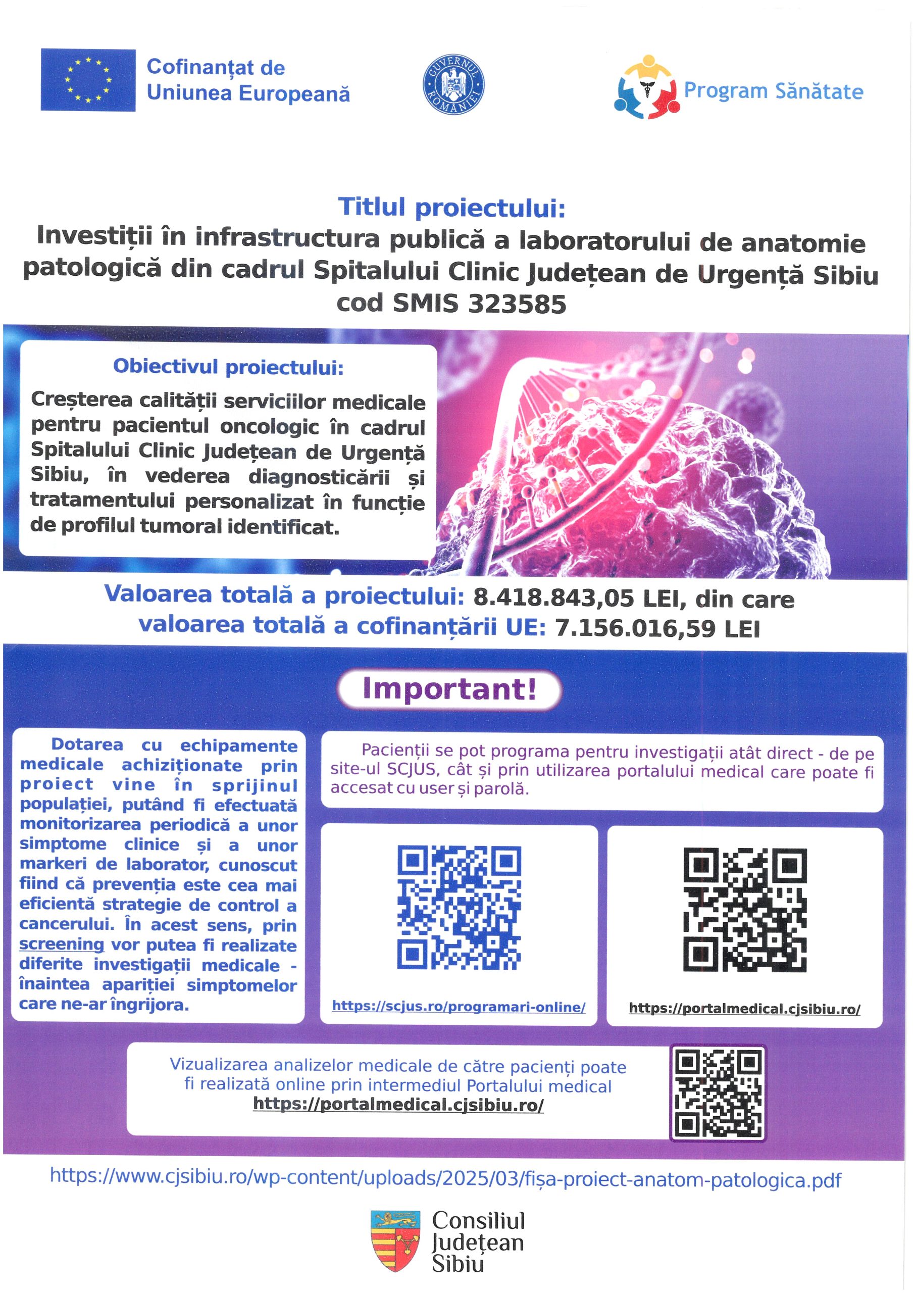 Articolul Investiții în infrastuctura publică a laboratorului de anatomie patologică din cadrul Spitalului Clinic Județean de Urgență Sibiu”cod SMIS 323585 apare prima dată în Primaria Selimbar.