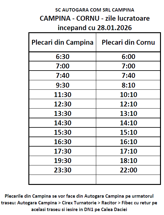 The post Program și rute transport public în comun appeared first on Comuna Cornu | Județul Prahova.